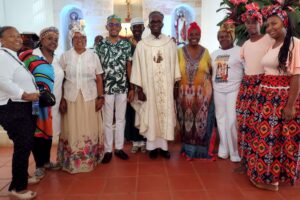 El 5 de octubre, día central de la fiesta, el templo se llenó en la mañana durante la Eucaristía afro de nuestra Pastoral, que presidió el p. Elías. Integrantes del proceso de Pastoral Afro que celebran en el templo de la plaza principal se unieron al coro con el canto y el toque de instrumentos.