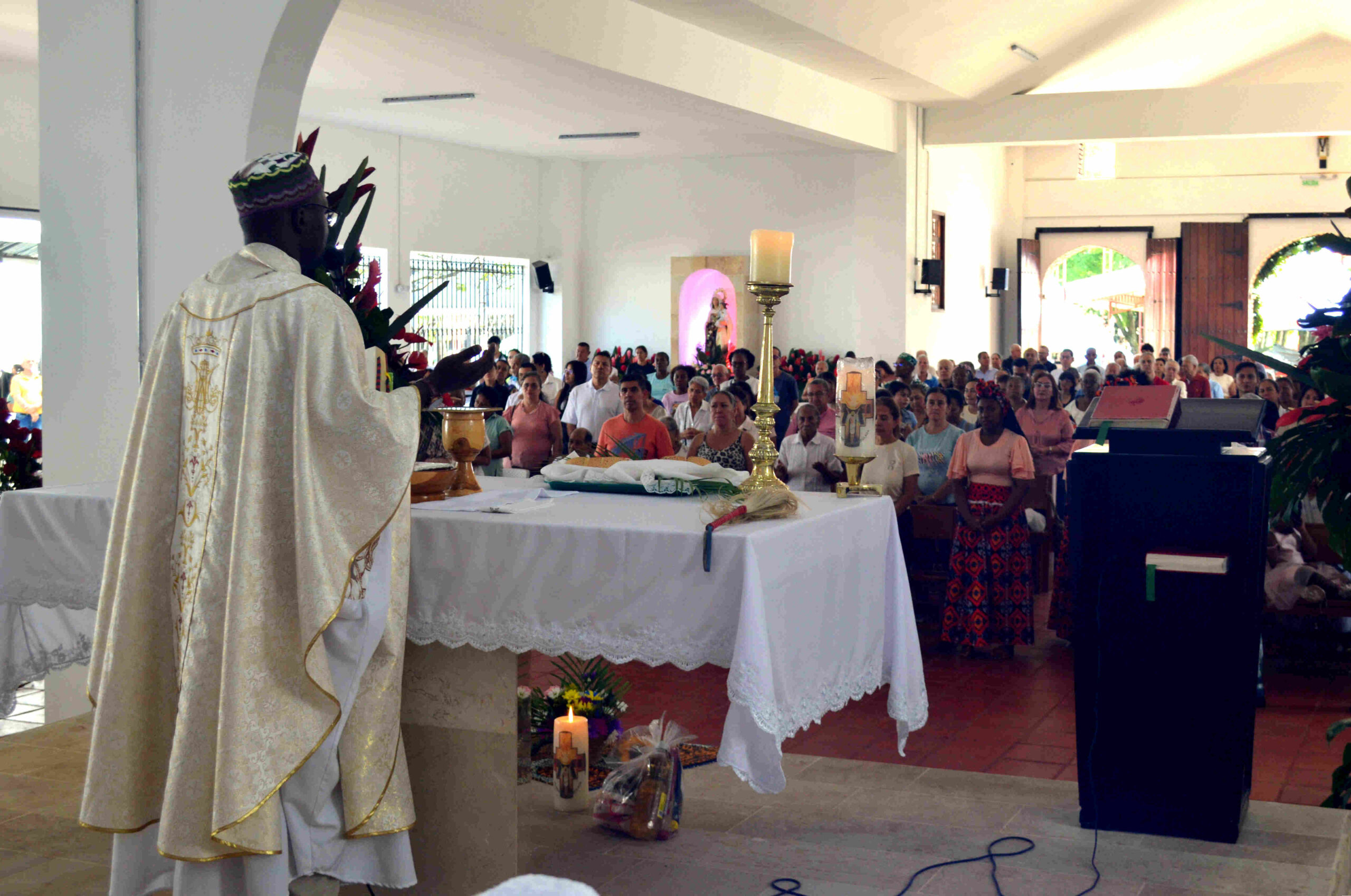 El 5 de octubre, día central de la fiesta, el templo se llenó en la mañana durante la Eucaristía afro de nuestra Pastoral, que presidió el p. Elías. Integrantes del proceso de Pastoral Afro que celebran en el templo de la plaza principal se unieron al coro con el canto y el toque de instrumentos.