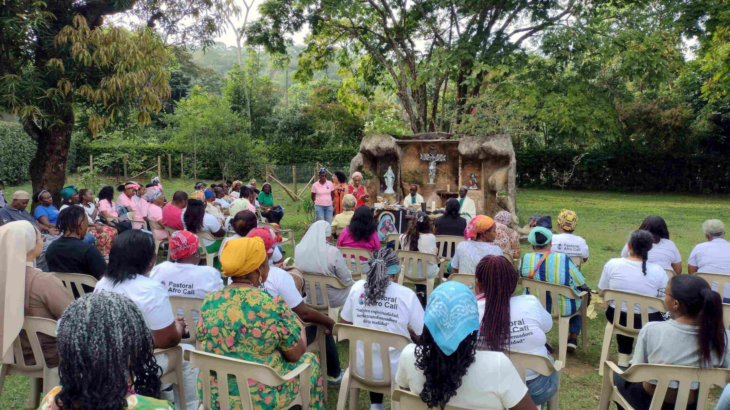 El p. Jaques Monsengo, misionero comboniano de María Madre del Buen Pastor (Cali), dirigió el retiro. Su charla, Bautismo e identidad en la espiritualidad afrocolombiana, resaltó la iniciación cristiana como raíz de la identidad del pueblo negro: los pueblos afrocolombianos asumen la identidad más allá del rasgo individual, como herencia comunitaria con memoria africana. Sigue al “Soy porque somos” de la filosofía africana Ubuntu. Vivimos una memoria viva con nombres de ancestros, cantos, tambores, ritos, historias al calor del fogón y huellas de un pasado marcado por el dolor, pero también por una profunda dignidad. Nos sincronizamos con este tema con la decisión de la Arquidiócesis de Cali de dedicar el año 2026 al bautismo.